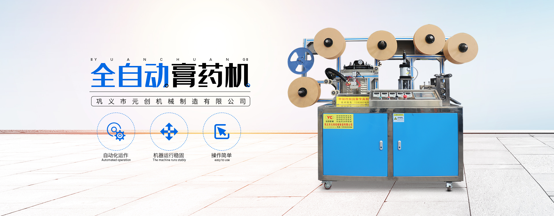 關于我們about us鞏義市元創(chuàng)機械制造有限公司是一家致力于中醫(yī)膏藥貼設備自動化的設計、生產(chǎn)與銷售的企業(yè)。膏藥機廠家憑借在機械、電氣、工藝、材料等方面的技術團隊,已成為一家能提供非標定制膏藥貼設備的制造商。 查看更多+